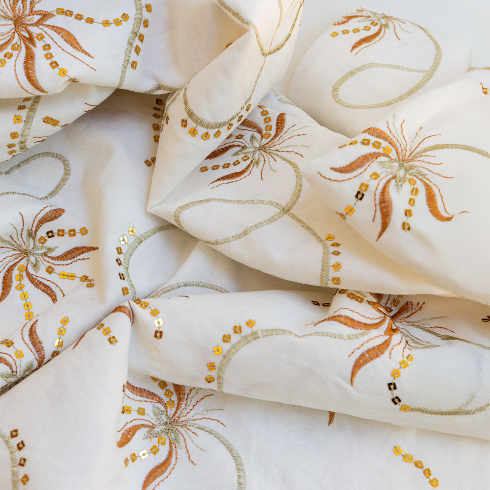 Sommer Finecord – eleganter Feincord mit Stickerei und Pailletten